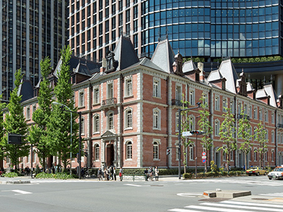 丸の内は、江戸城の堀で囲まれた内側という意味合いを持ち、このあたりには大名屋敷が立ち並んでいました。ところが、江戸時代が終わり、大名屋敷が取り払われた頃は、荒涼とした原野が広がり、誰も引き取り手のいない土地になってしまいます。当時の三菱財閥で創業者・岩崎弥太郎の弟・弥之助は、貧乏クジを引いたつもりで払い下げたとされています。この地に建てられたのが三菱一号館です。1894(明治27)年、開国間もない日本政府が招聘した英国人建築家ジョサイア・コンドルによって設計され、コンドルの愛弟子・曾禰達蔵が現場主任を務める丸の内建築所によって施工されました。この洋風建築物によって、丸の内がオフィス街に発展する歴史が作られたのです。老朽化のため、1968(昭和43)年に解体されたものの、2006(平成18)年の復元プロジェクトスタートによって、2009(平成21)年から製造方法や建築技術などまで忠実に再現し、再建されました。今では三菱第一号美術館として、当時の面影を楽しむことができます。