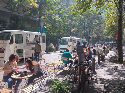 キッチンカーが並び、東京食材やご当地グルメが楽しめる