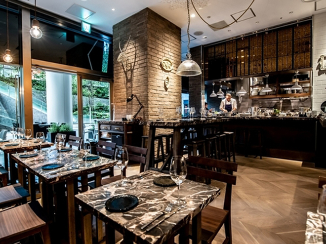 フランスにあるおしゃれなバールのような雰囲気が魅力のグランドコントワー。天井が高く広々とした店内に、ガラス窓の向こうには大手町プレイスのサンクンガーデンのグリーンが美しく映えます。このレストランでは出汁から手造りし、本格的なフレンチをお手頃価格で楽しめると人気です。ランチメニューは、フレンチ惣菜やメインを楽しめる「週替わりランチ」1,000円(税込)、上質な赤身肉を使用した「ローストビーフ丼」1,100円(税込)、たっぷり野菜でヘルシーな「サラダプレートランチ」1,000円(税込)など、バリエーションも豊富。春の終わりから夏にかけてはテラス席でランチもおすすめです。